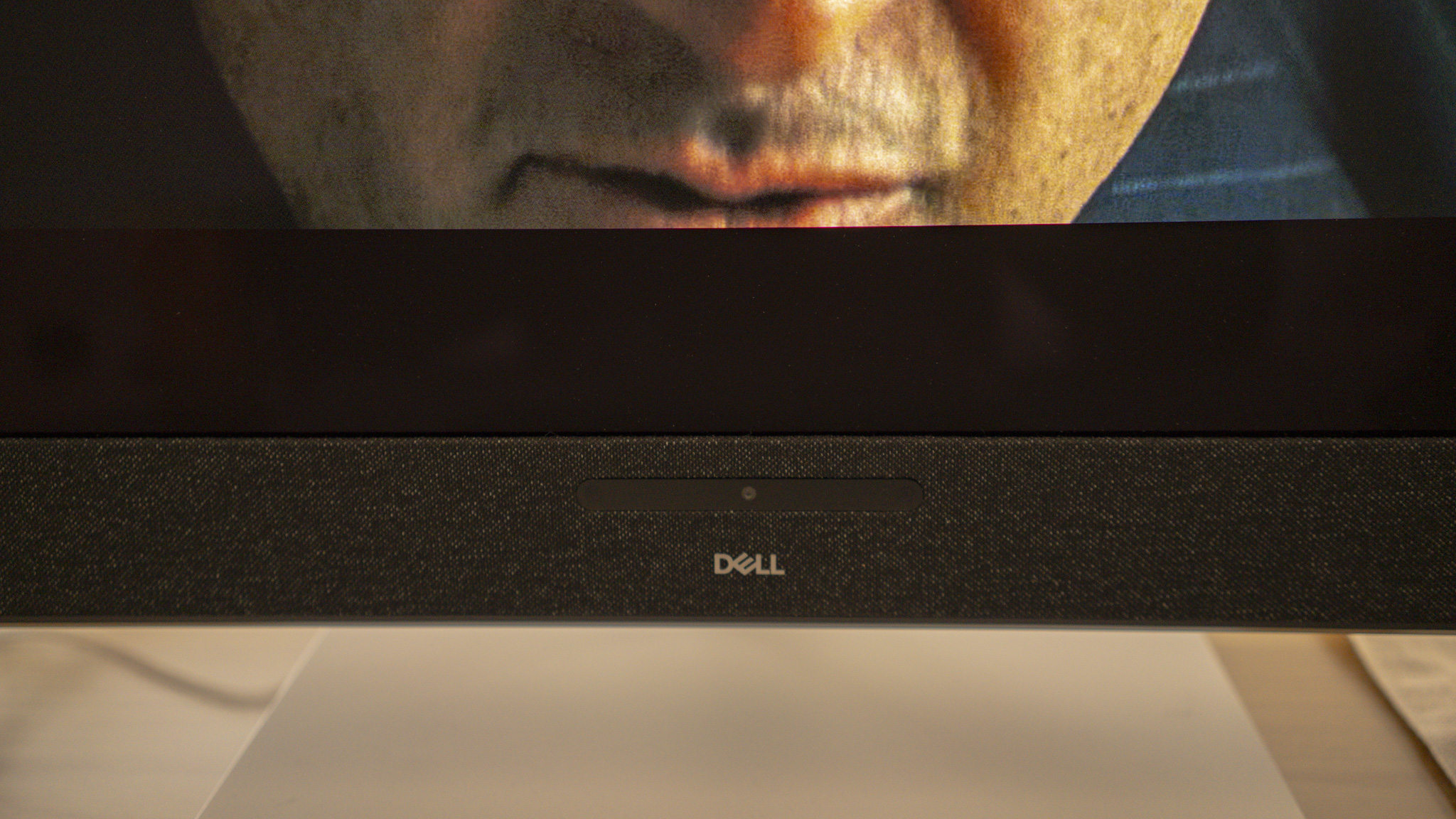 Dell habla de este procesamiento como spatial audio, pensado para proporcionar una experiencia envolvente, aunque para ello requiere que el usuario esté bien centrado respecto a la pantalla, pues si te mueves más de 45 grados a ambos lados el efecto desaparece. En en el centro de esa «barra de sonido» hay justamente una mini-cámara IR que identifica la posición del oyente para procesar el audio de la mejor manera según su posición.