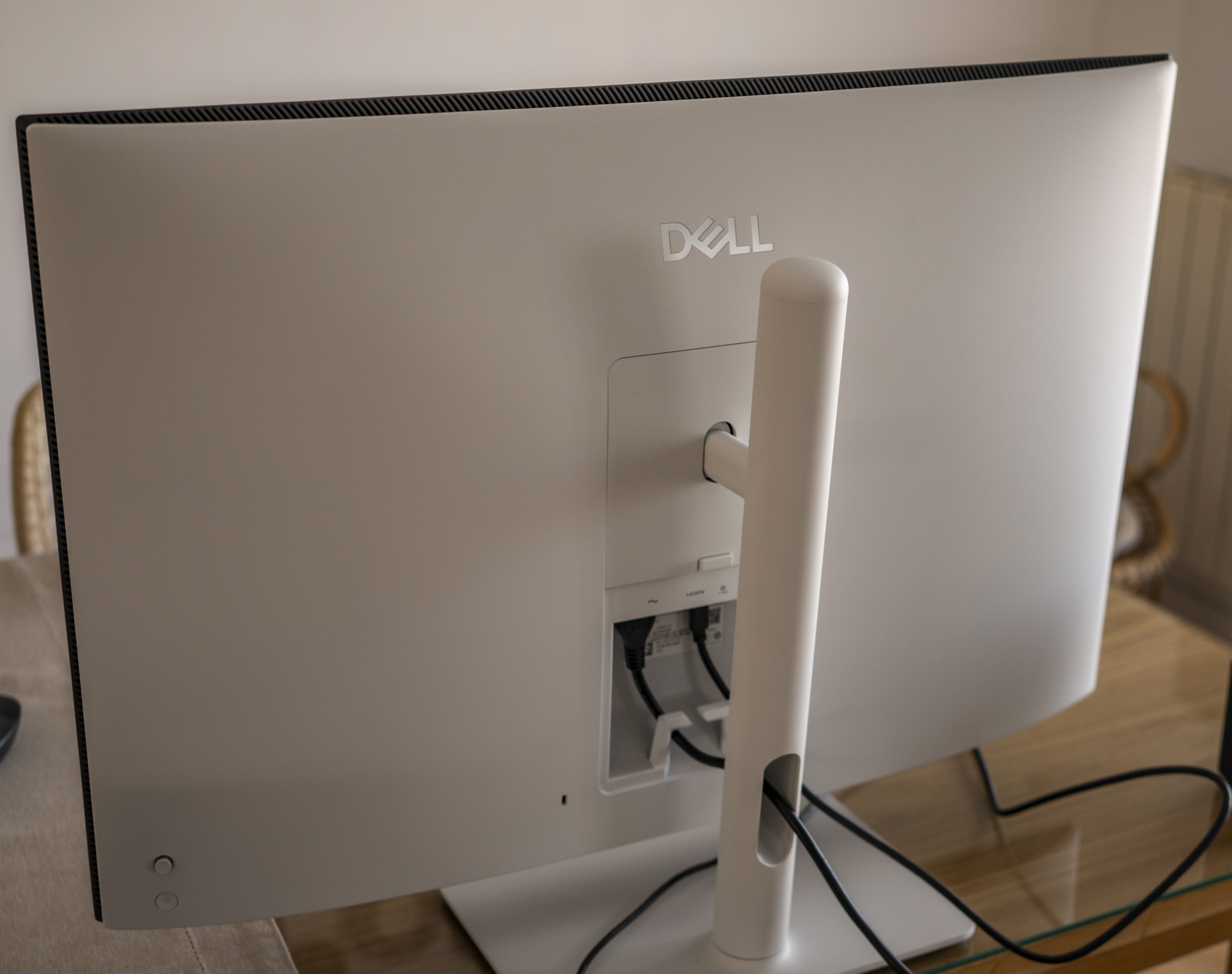 Como no todo es bueno, voy a mencionar unos pocos aspectos mejorables del Dell S3225QC. Primero, el diseño, que si bien tiene estética bonita y elegante, abusa del plástico. Es evidente que el diseño es uno de los apartados donde Dell ha buscado economizar el conjunto, aunque es justo decir también que en ningún caso se siente endeble y la peana es resistente.