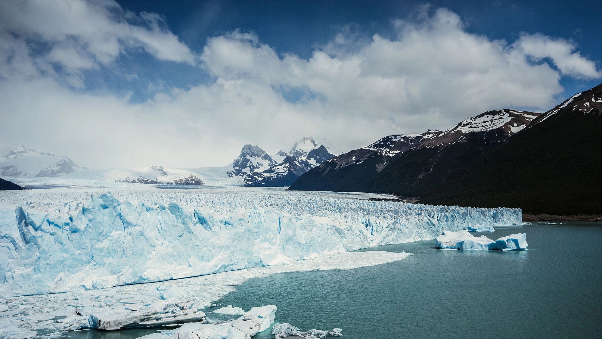 Ya no es solo la magnitud del glaciar, sino el entorno que le rodea: bosques, picos nevados, un clima cambiante a casi cada minuto, con nubes que dejan una llovizna helada para dar paso en poco tiempo a un sol abrasador. Todo alrededor del Perito Moreno es de una belleza suprema, superlativa, profundamente emocionante.