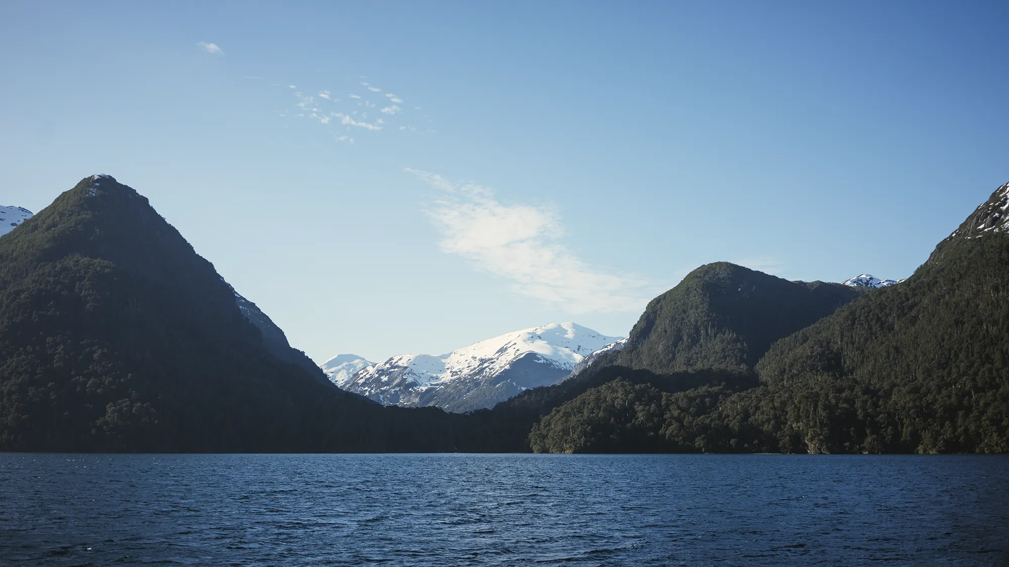 La navegación por el brazo Blest del Nahuel Huapi dura aproximadamente una hora y ya es merecedora por sí sola de pagar el tour. El radiante día de primavera, con ese frío apaciguado por la calidez del sol, nos dejaba estampas limpias y claras de los picos de los cerros todavía nevados, contrastando con el verde intenso del bosque. La cubierta exterior del ferry permitía disfrutar de un festín para la vista y el alma, además de para las cámaras de fotos de todos los visitantes.